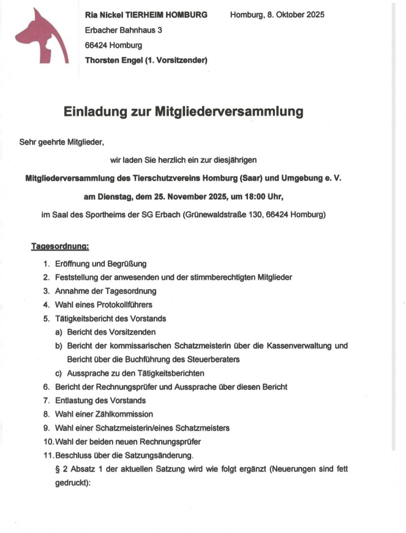 Das ist ein guter Anfang und wir sind auch ehrlich gesagt ein bisschen stolz. Eine Änderung gilt für die Aufnahme von Fundkatzen aus der Stadt St. Ingbert. Für deren Aufnahme ist zukünftig das Katzenhaus Oberwürzbach zuständig, da hier ein eigener Vertrag mit der Stadt geschlossen wurde. Hunde und Kleintiere aus St. Ingbert werden weiterhin im Tierheim Homburg aufgenommen.