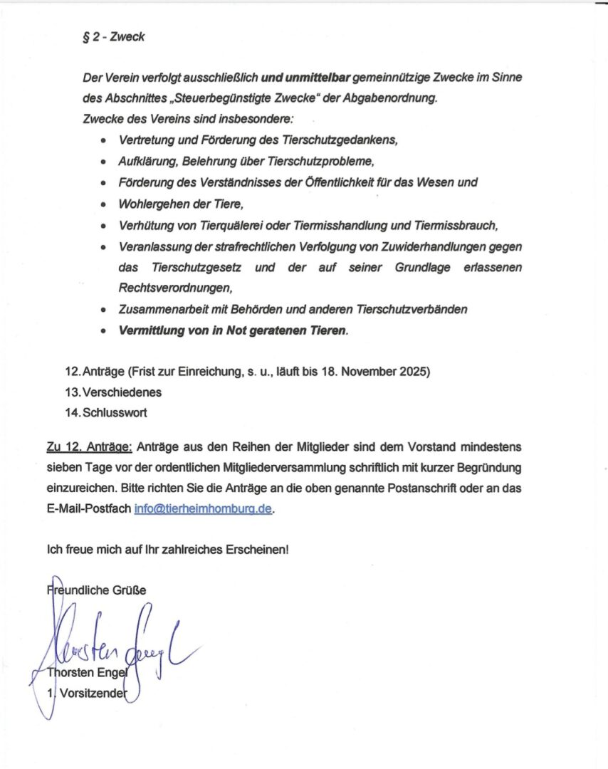 Am Osterwochende war ein Vertreter des Saarländischen Städte- und Gemeindetages mit einigen interessierten Bürgermeistern vor Ort im Tierheim. Mit im Gepäck hatte er den bereits unterschriebenen Konsortialvertrag. Dieser Vertrag regelt die Unterbringung von Fundtieren mit den zuständigen Kommunen und wurde bisher mit 1,00 Euro pro Einwohner und Jahr vergütet. Nach langwierigen Verhandlungen konnten wir uns auf einen Dreijahresvertrag mit folgenden Konditionen einigen: