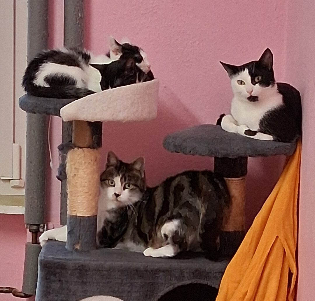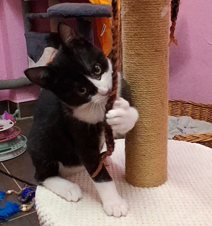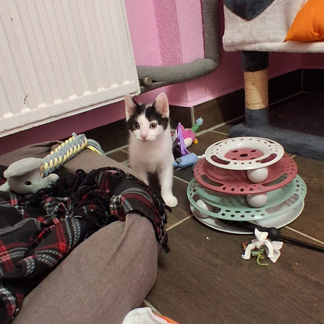 Momentan aufgezogen von ihren beiden Müttern Lulu und Tulip – Lulu blüht in ihrer Rolle auf, wobei sich Tulip (verständlicherweise, bei solchen Raufbolden) eher zurückzieht – feilen die beiden Kitten noch ein wenig am Katzen-ABC und hoffen auf ein Zuhause auf Lebenszeit, in das sie gerne im Paar oder (eventuell einzeln) zu einer jungen Bestandskatze ziehen.