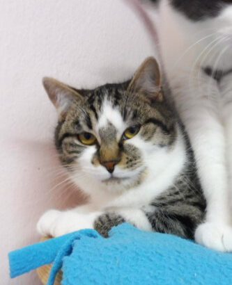 Pepper kam mit Minty ins Tierheim. Sie ist eine sehr soziale Katze mit ihren Katzenmitbewohnern.